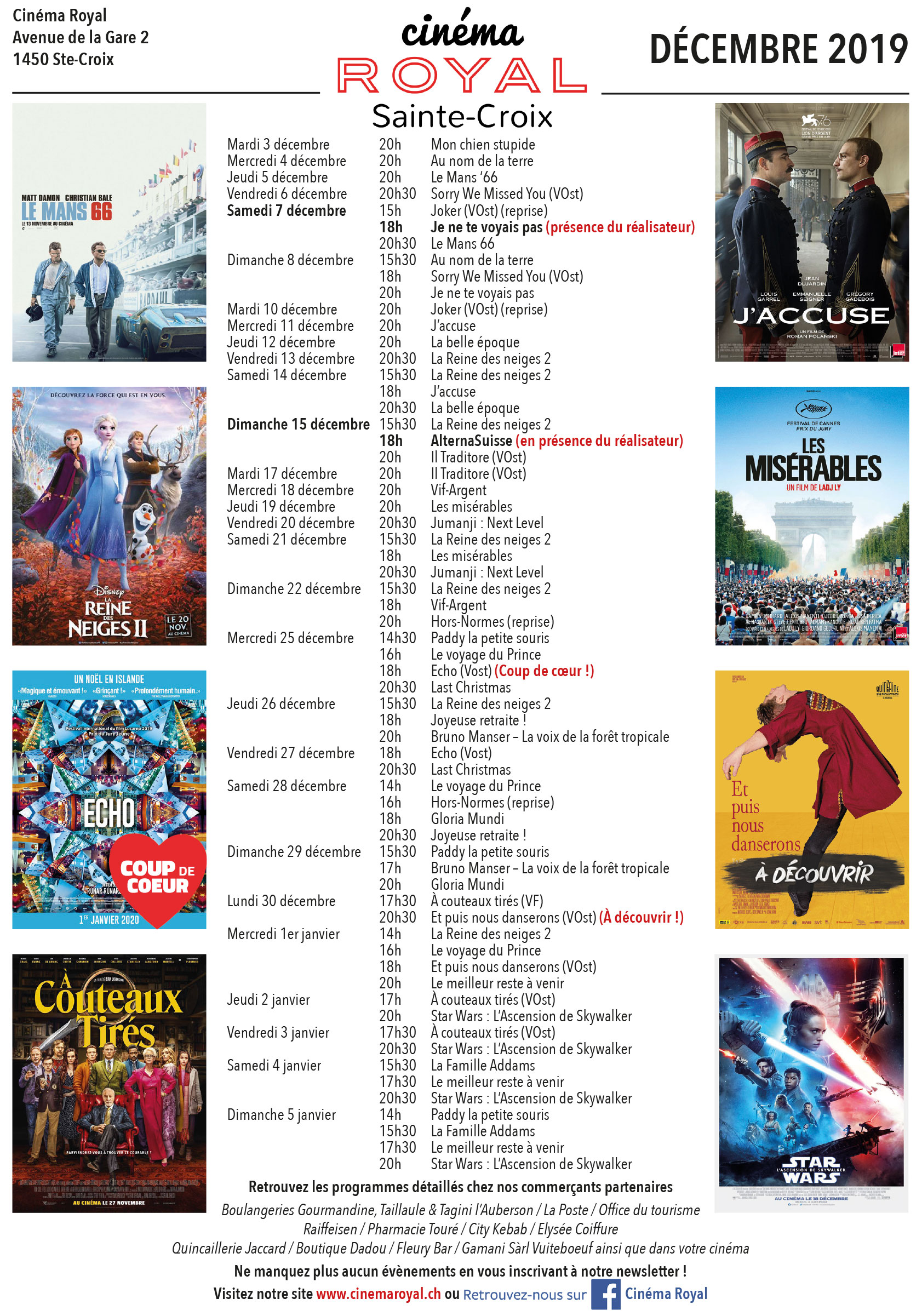 Grâce à sa plateforme Cinefile (https://fr-cinemaroyal.cinefile.ch), votre salle de cinéma préférée vous permet de revoir ou de rattraper des toiles que vous auriez manquées à leur sortie.